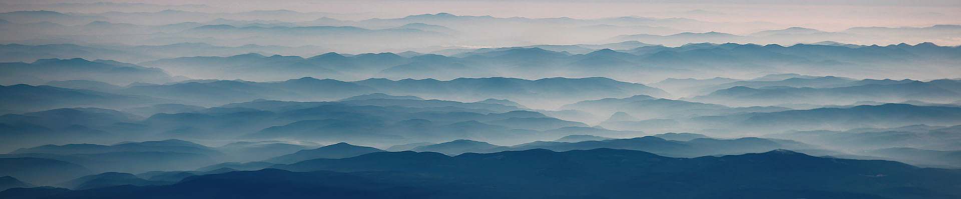Diese Gipfellinien, die aus der Höhe so weich und sanft erscheinen, erzählen in Wahrheit von der Urkraft der Erde. Aus der Distanz jedoch löst sich diese Geschichte auf in eine ätherische Folge blauer Silhouetten – als wären die Gebirgszüge selbst nur Wellen in einem gewaltigen geologischen Ozean, dem Meer der Zeit. Denn hier, in der Überlagerung explosiver Vulkane, abtauchenden Meeresbodens und gestauchter kontinentaler Kruste, wird sichtbar, wie eng alles miteinander verwoben ist: Zeit, Erdinneres, Erdkruste, Ozean, Atmosphäre, Bewegung und stetiger Wandel.